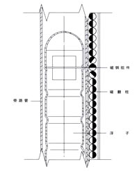 液位計(jì)根據(jù)浮力原理和磁性耦合作用研制而成。當(dāng)被測(cè)容器中的液位升降時(shí),液位計(jì)主導(dǎo)管中的浮子也隨之升降,浮子內(nèi)的長(zhǎng)久磁鋼通過(guò)磁耦合傳遞到現(xiàn)場(chǎng)指示器,驅(qū)動(dòng)紅、白翻柱翻轉(zhuǎn)180。,當(dāng)液位上升時(shí),翻柱由白色轉(zhuǎn)為紅色,當(dāng)液位下降時(shí),翻柱由紅色轉(zhuǎn)為白色,指示器的紅、白界位處為容器內(nèi)介質(zhì)液位的實(shí)際高度,從而實(shí)現(xiàn)液位的指示。 |