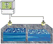 CN331 轉(zhuǎn)換器與兩個探頭連接時,可以實(shí)現(xiàn)液位差測量功能。
