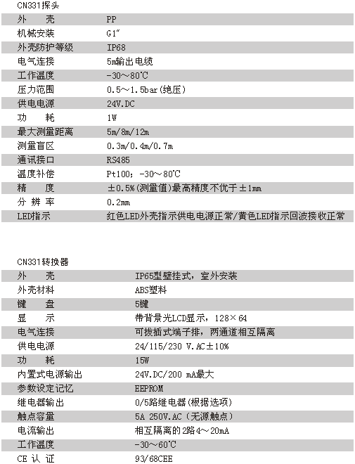 CN331 超聲波物位探頭內(nèi)置有信號過濾系